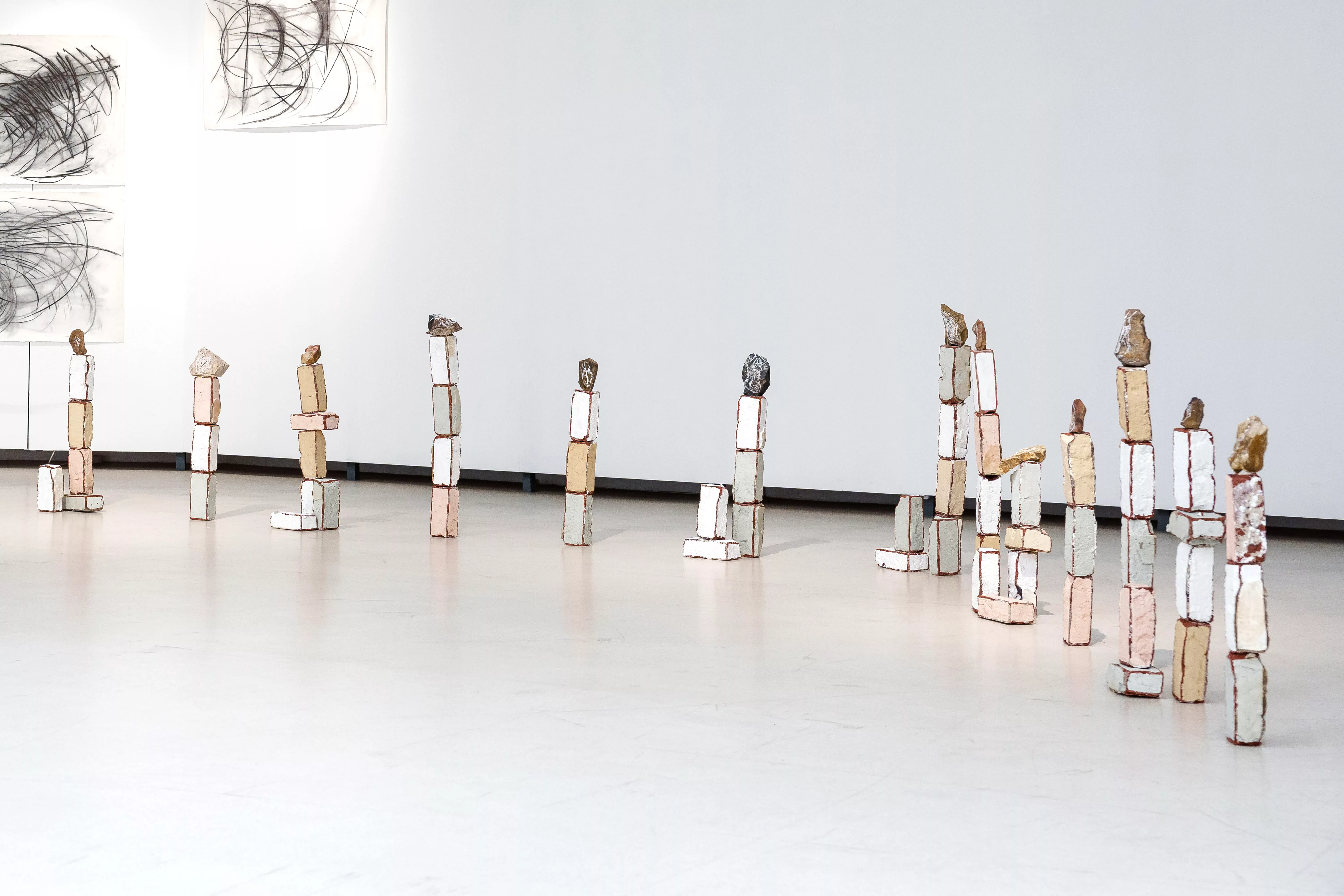 Ce paysage aride de briques, argiles et pierres renvoie à l’expression freudienne d’un continent noir pour définir le féminin. Bestiaire de parties génitales, il élève ce qui est tabou en totem.